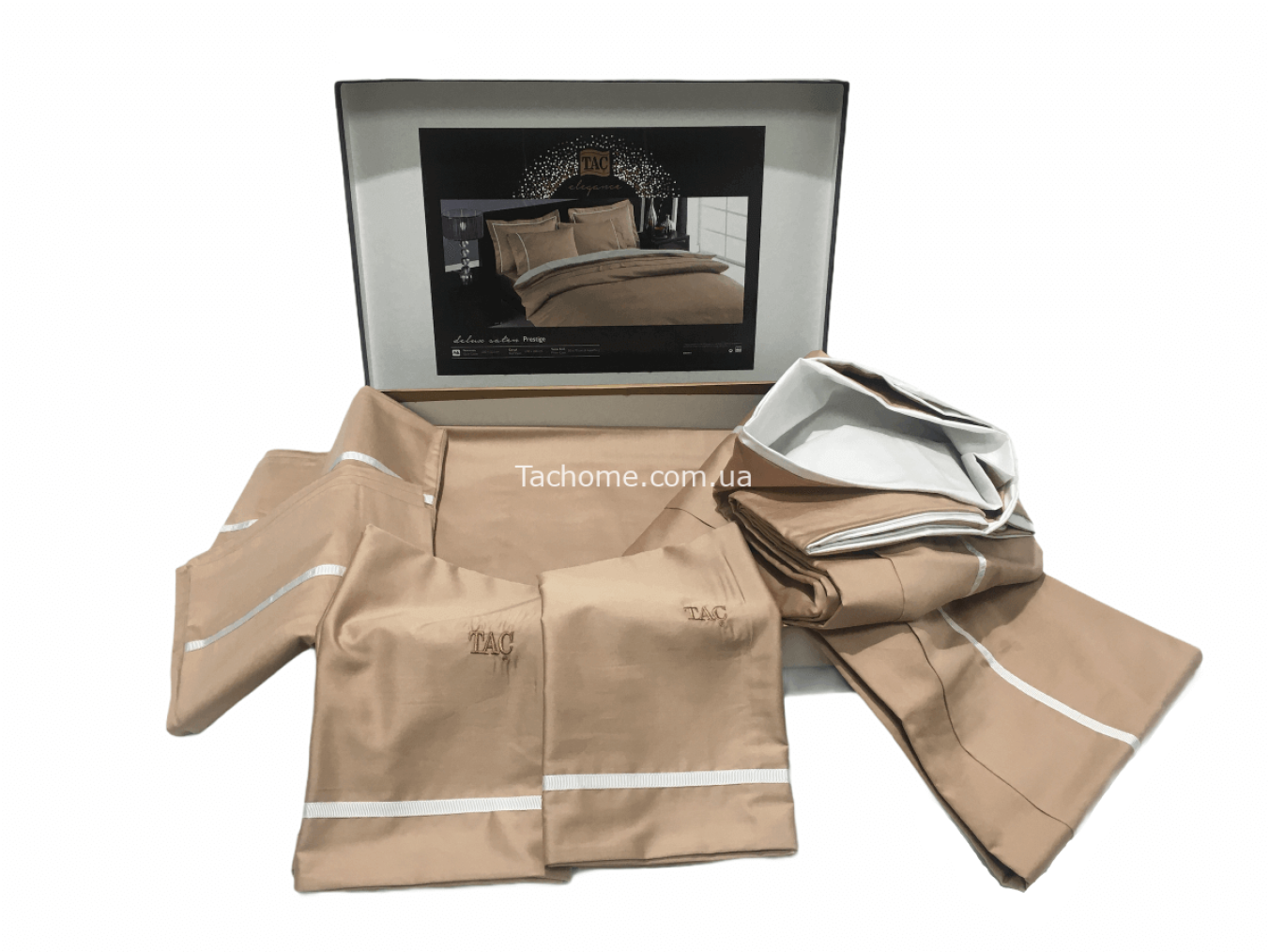 Роскошный комплект двуспального постельного белья в необычной кофейной палитре. Модель от известного турецкого производителя TAC выполнена из стопроцентного хлопкового материала разновидности Saten Delux. Особую изюминку комплекту придает комбинация со светлыми контрастными вставками. Легкий шелковый блеск и устойчивость ткани к внешним агрессивным воздействиям делают набор отличным решением в качестве повседневного комплекта, позволяющего добиться максимально комфортного сна.