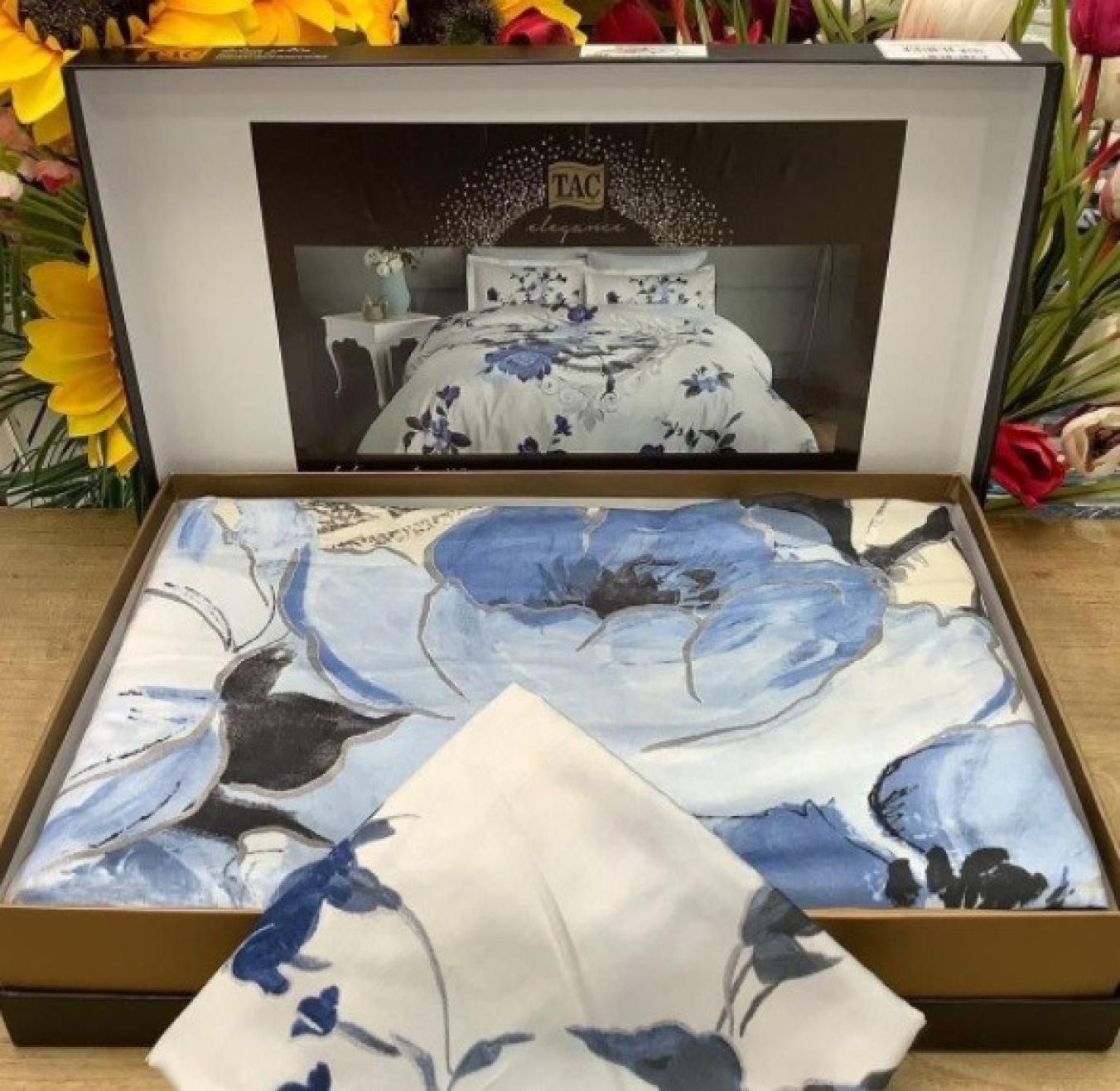 Комплект постельного белья от известной турецкой марки «TAC» из сатина делюкс, отличающегося высочайшей плотностью плетения. На один квадратный сантиметр приходится 120 нитей. Это наделяет его невероятной устойчивостью к износу, прочностью, долговечностью. Ткань при этом остается мягкой, приятной к телу, невероятно гладкой.