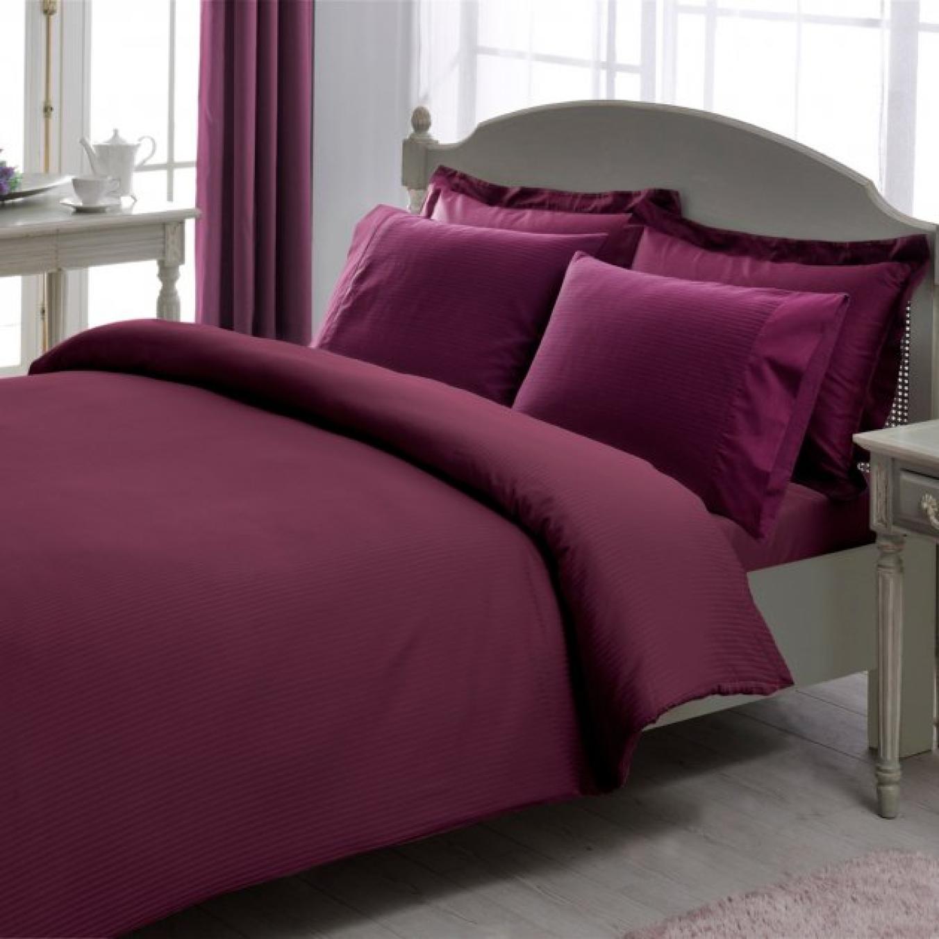 Великолепный двуспальный комплект постельного белья фиолетового цвета от известного турецкого производителя TAC. Он пошит из хлопка особого плетения, называемого страйп сатин. Его характерной особенностью является переливающийся блеск.