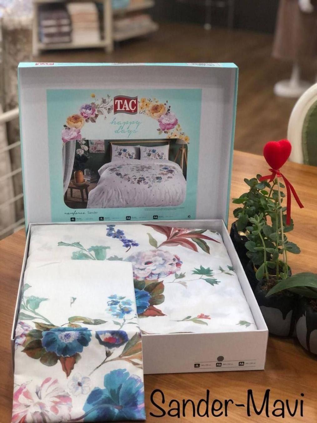 Комплект полуторного постельного белья из наволочки, пододеяльника и простыни от известного турецкого бренда TAC. Пошитый из хлопка, он не вызывает аллергии, сохраняет форму и не теряет насыщенности окраса цветочного принта. Это белье станет прекрасным вариантом для спальни как взрослого человека, так и подростка.