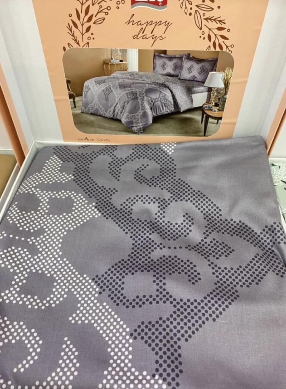 Двуспальный роскошный комплект постельного белья от турецкого производителя TAC. Набор выполнен из стопроцентного хлопкового натурального волокна Saten, отличающегося от обычного улучшенными качествами и шелковистым блеском. Благородная серебристая палитра с геометрическим рисунком придает комплекту особую роскошь. Комплект состоит из простыни, пододеяльника и двух наволочек. Поставляется комплект постельного белья Saten Corette Gri в фирменной упаковке.