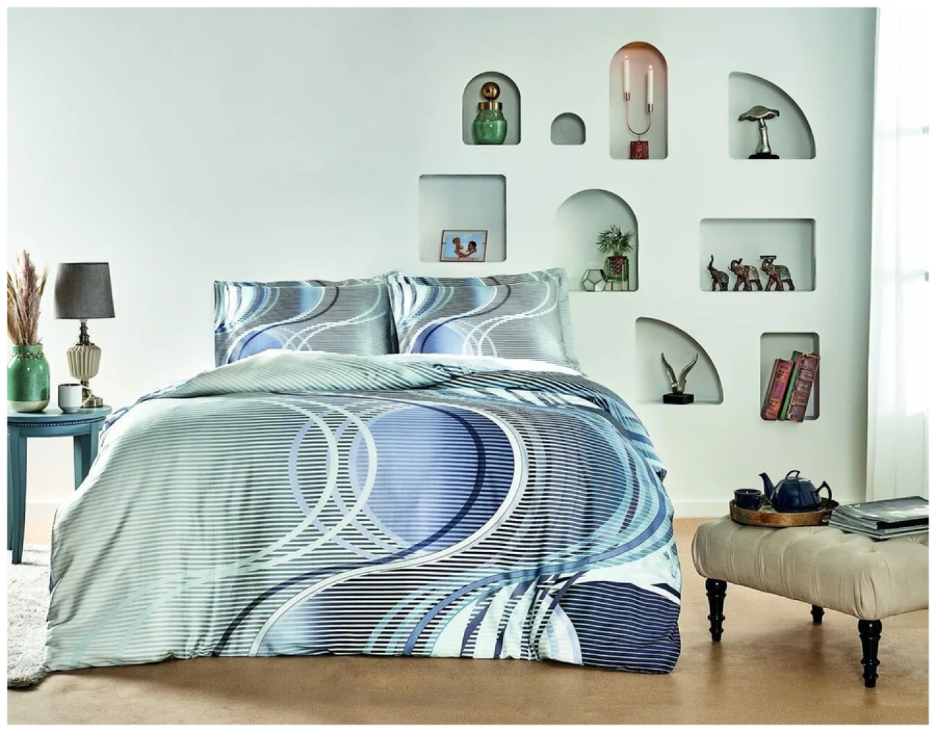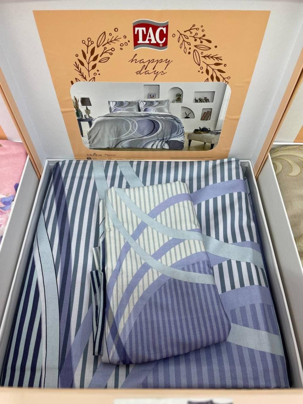 Изысканное и роскошное двуспальное постельное белье от турецкого бренда TAC, известного высоким качеством своей продукции далеко за пределами Турции. Комплект выполнен из хлопкового волокна особого плетения Saten. Необычный дизайн в палитре мультикалор представляет собой переходящие один в другой разводы различных оттенков. Набор состоит из простыни, пододеяльника и двух наволочек.