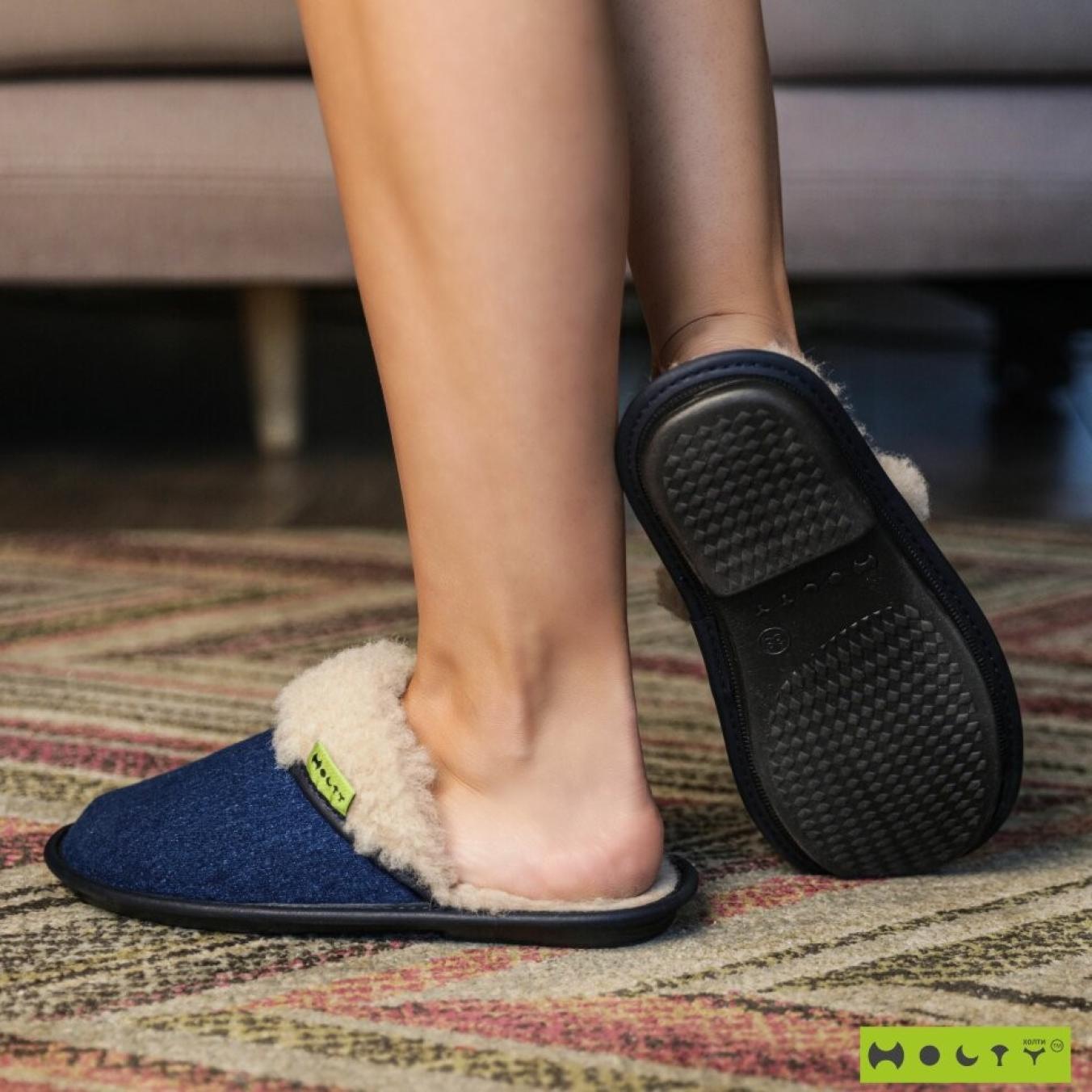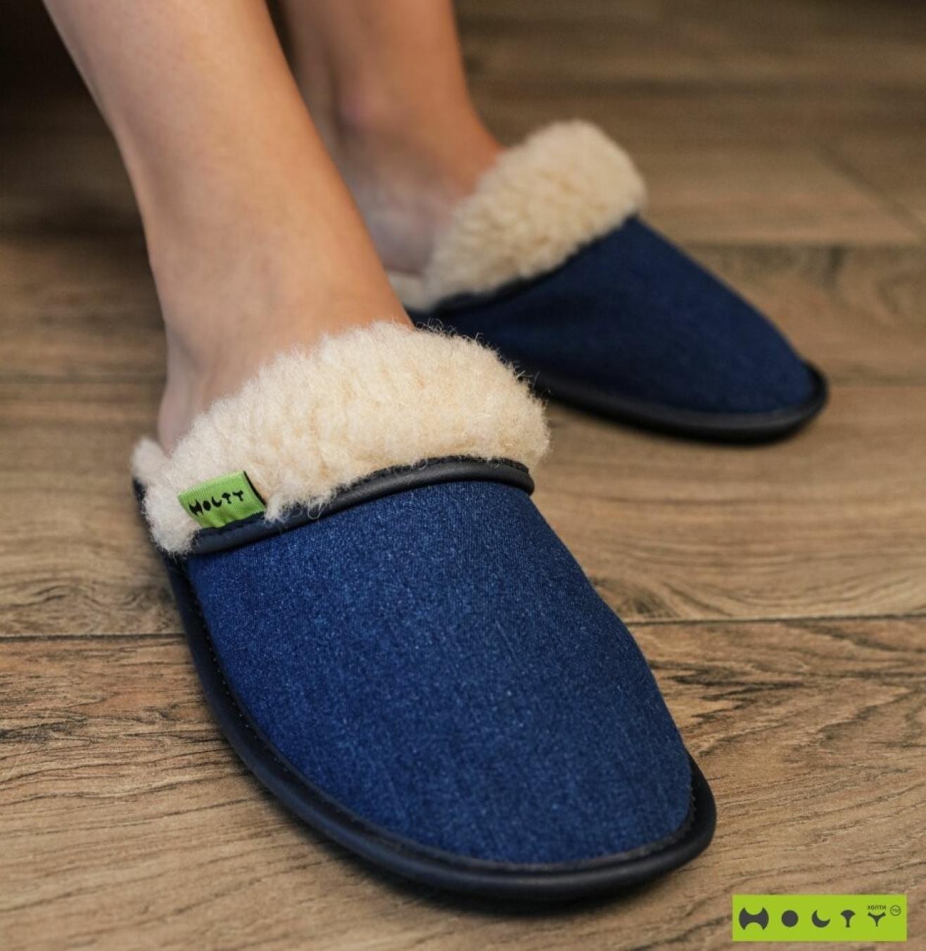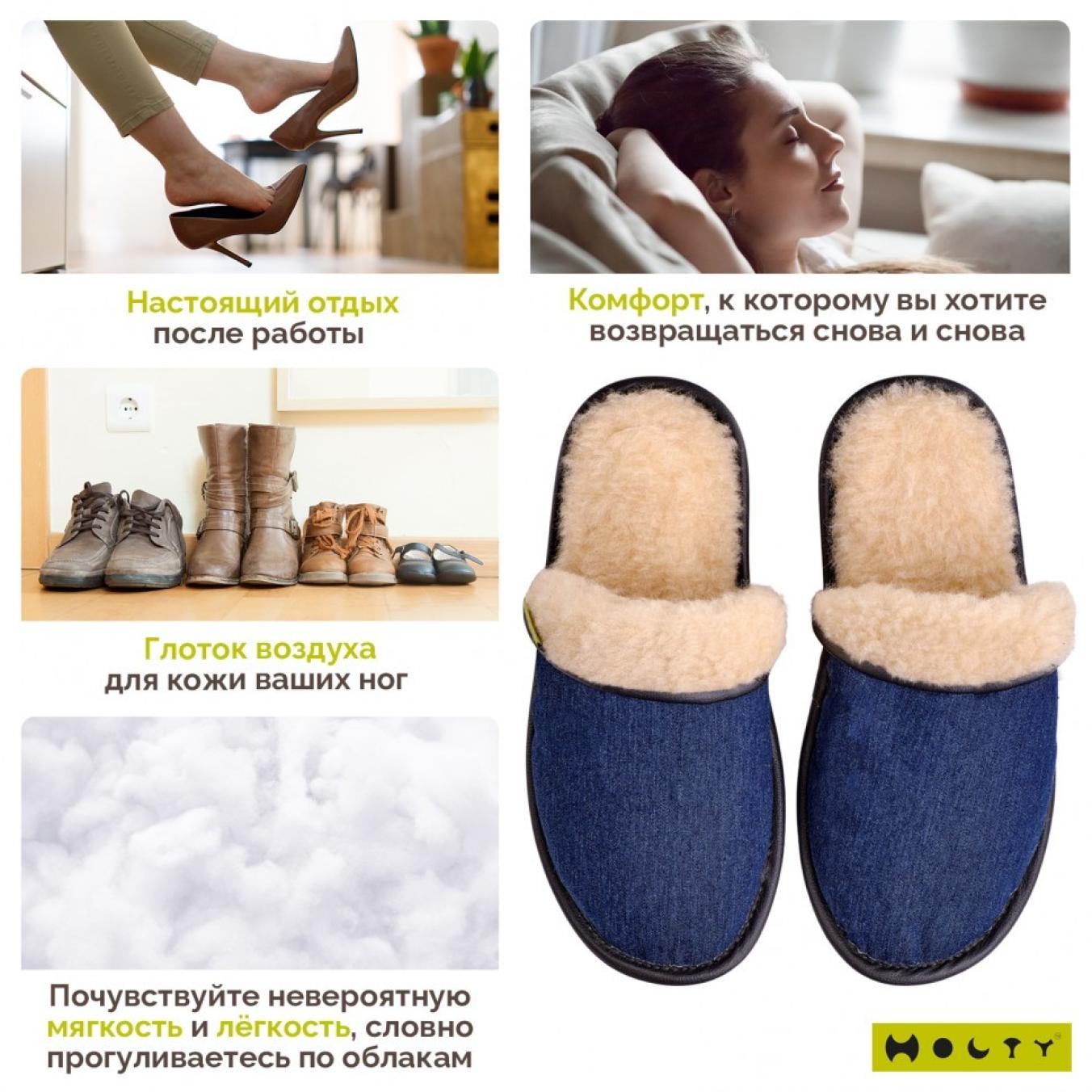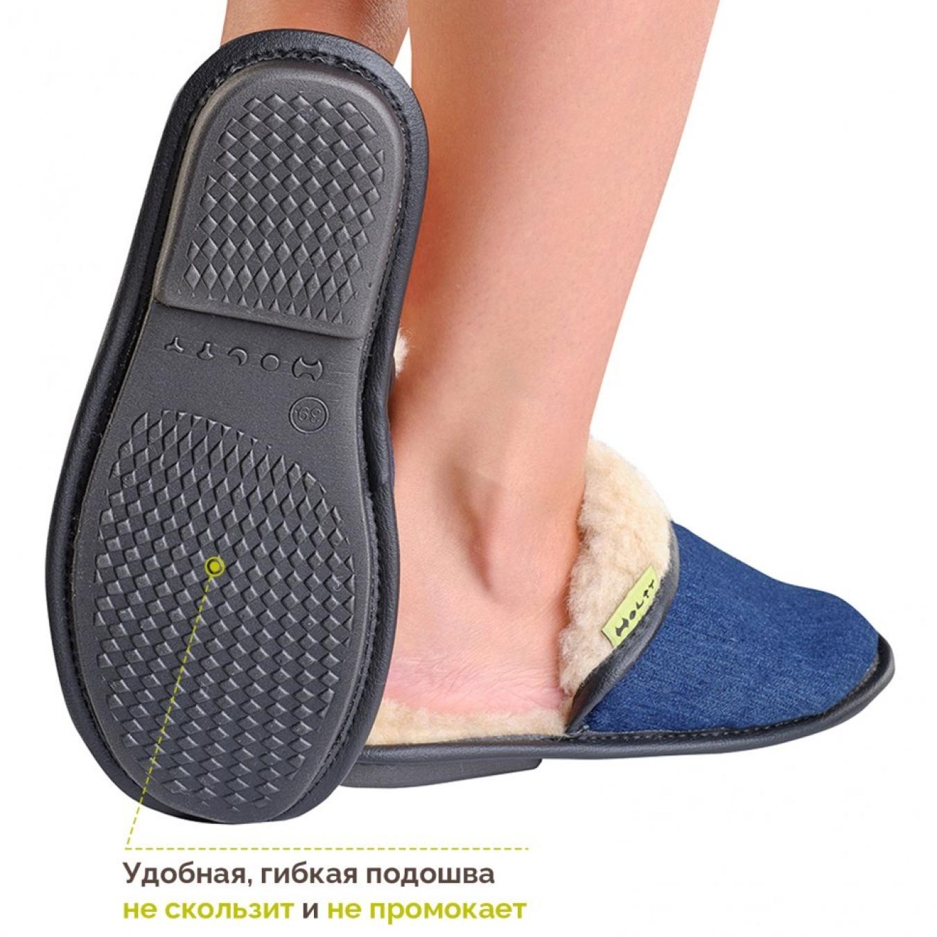 Шлепанцы из дублированного меха женские ( цвет синий)