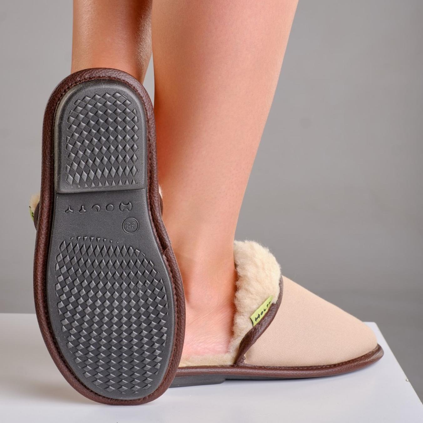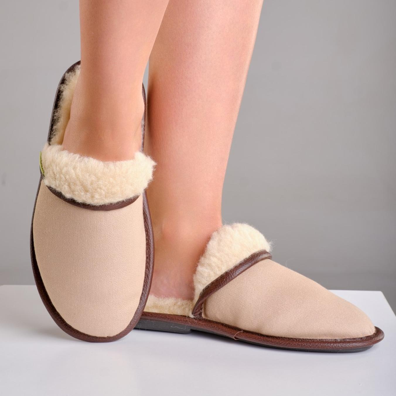 Шлепанцы меховые из дублированного меха( цвет бежевый)