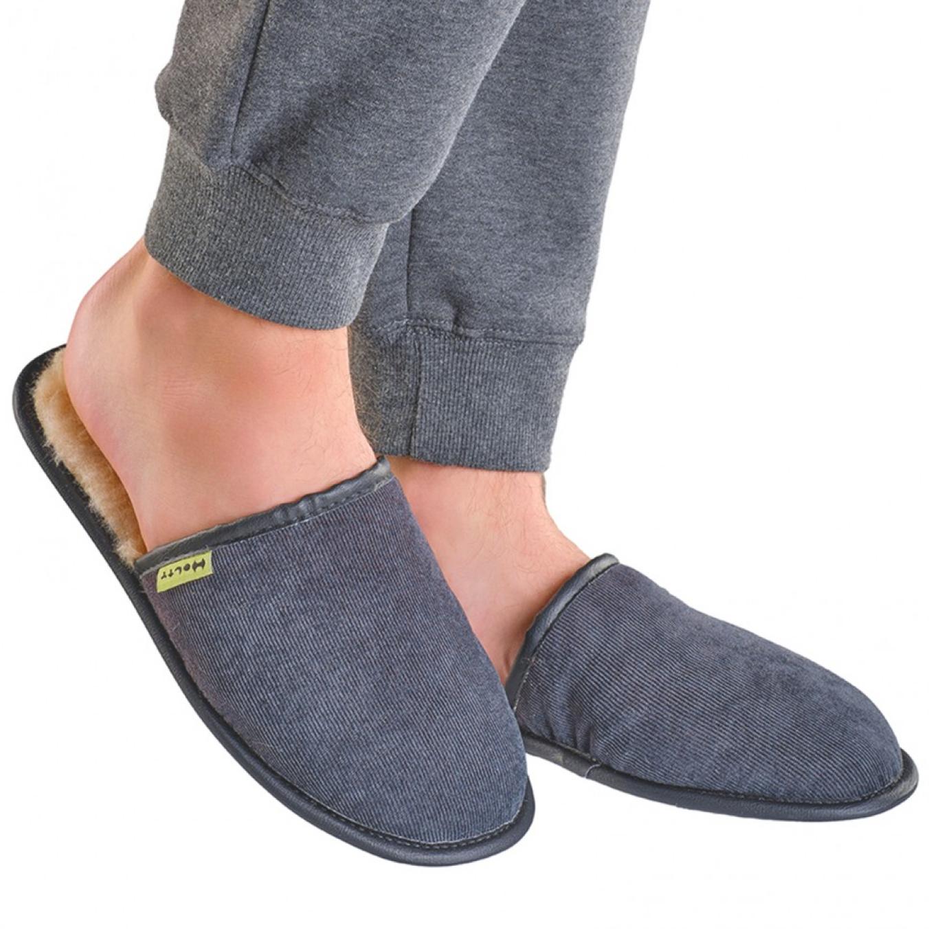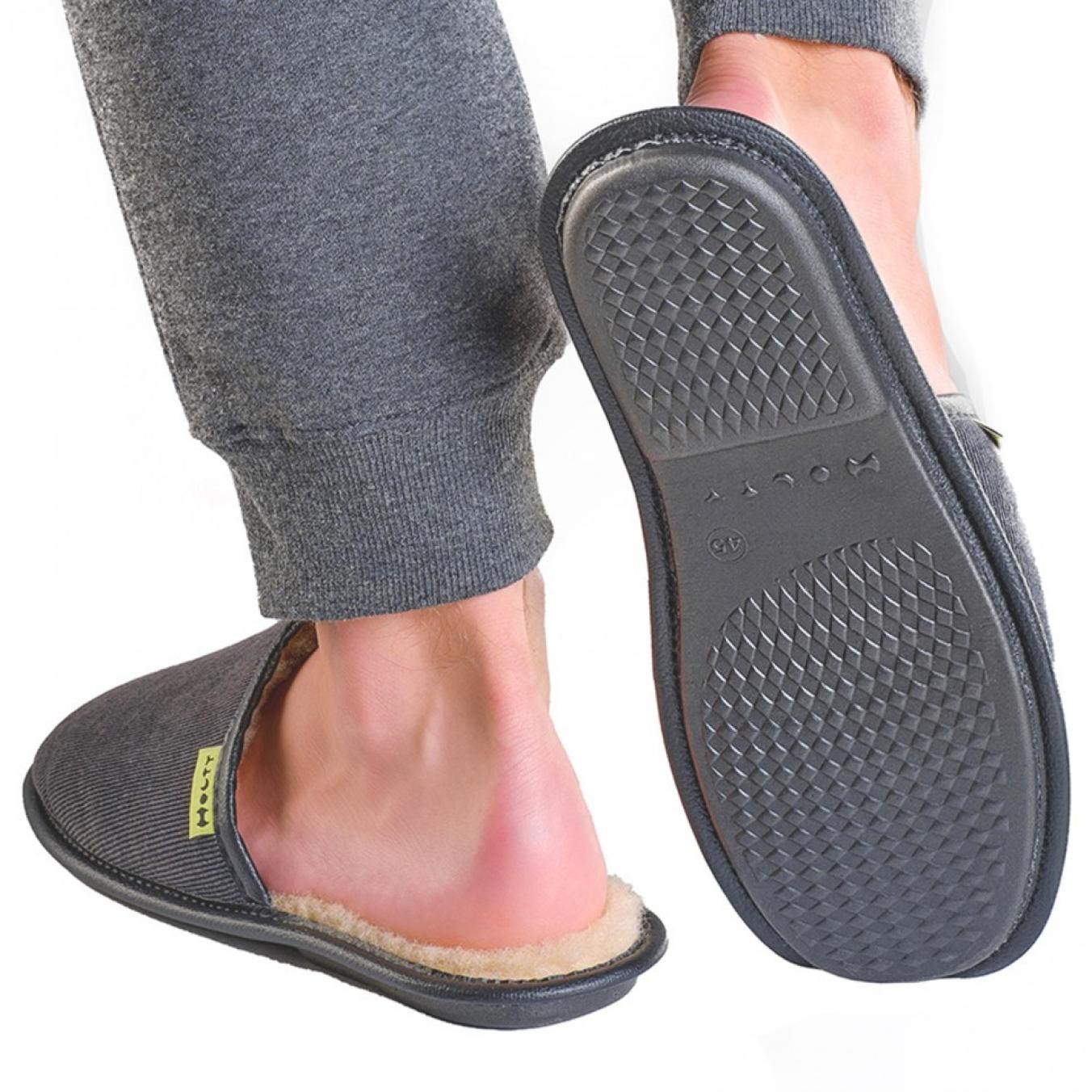 Шлепанцы меховые из дублированного меха (темно-серый)