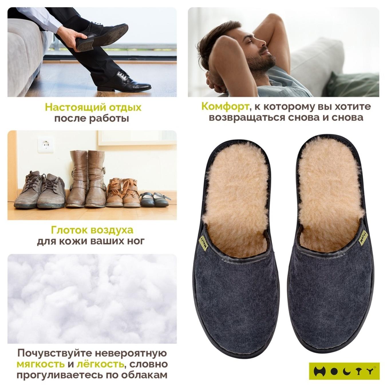 Тапочки "Легкие" мужские из натуральной шерсти (цвет графитовый)
