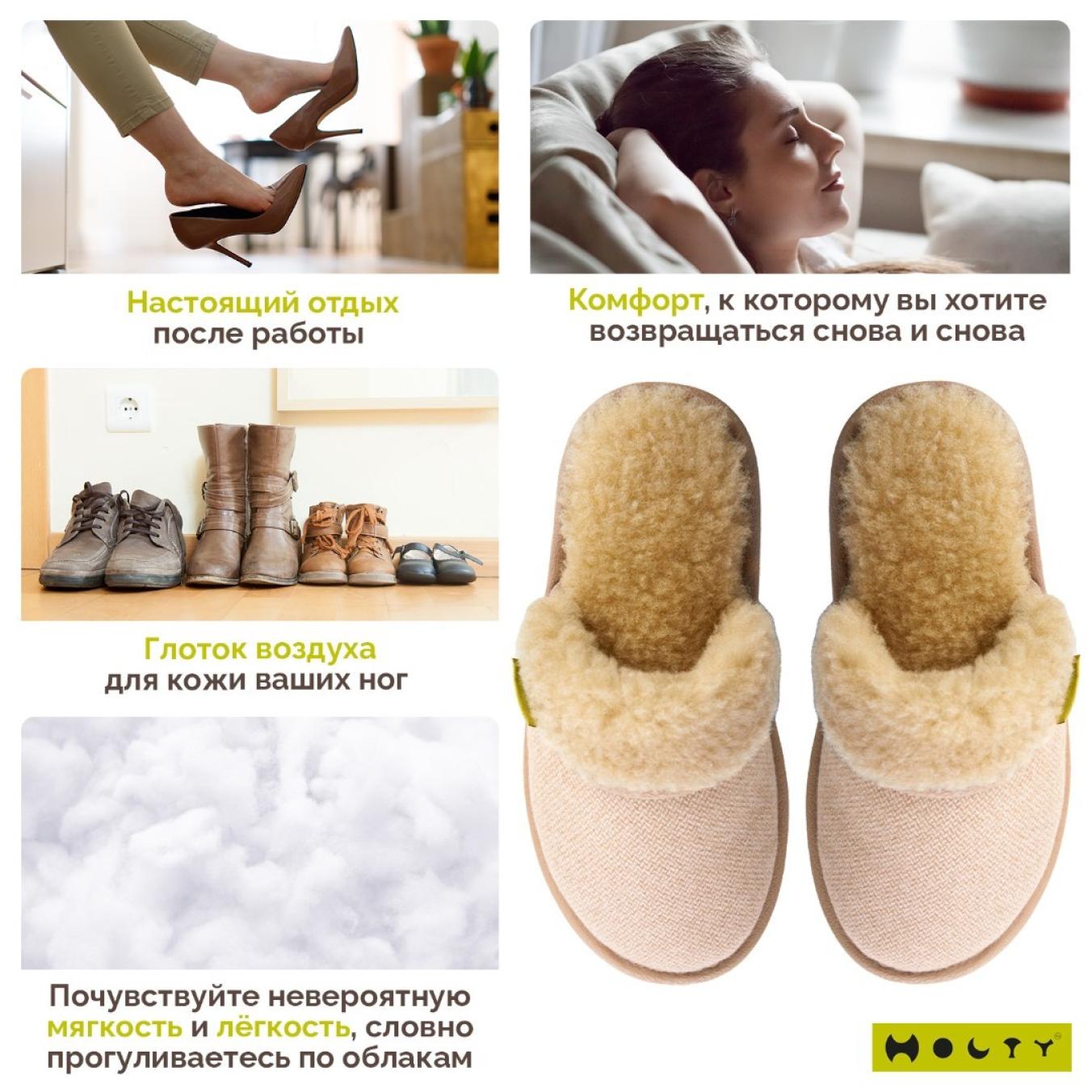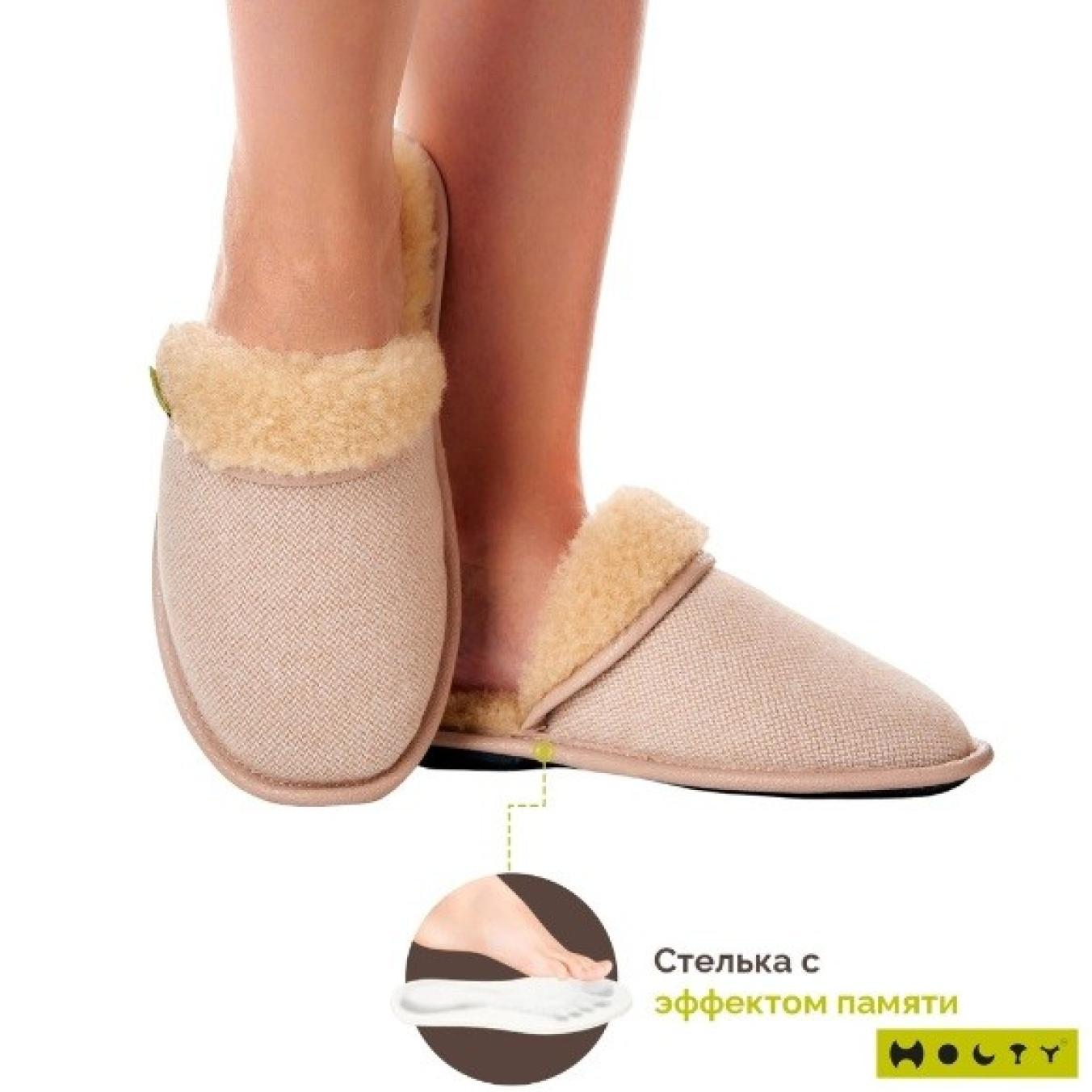 Тапочки Мягкие женские из натуральной шерсти (цвет миндальный)