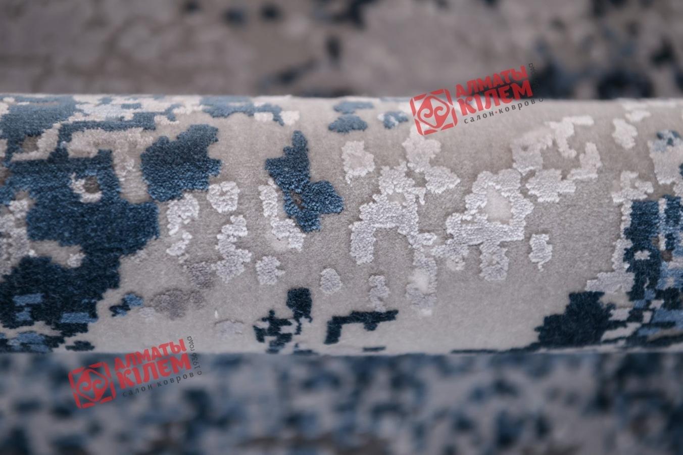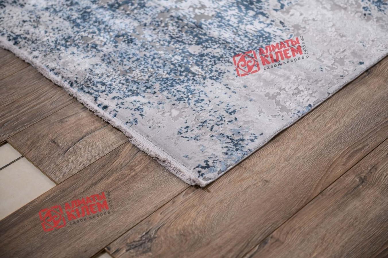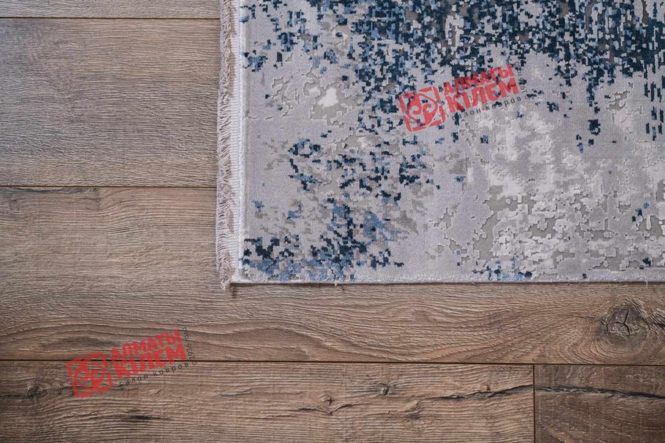 Напольный ковер из коллекции «Troia» от турецкого бренда «SetaHali» в современном дизайне. Это покрытие отличает оригинальное дизайнерское решение. Модель лишена традиционных классических элементов. Декор ковра создан переходом серого оттенка в синий. Граница между тонами и полутонами слегка размыта. Это делает фактуру полотна подобием гранитного или мраморного камня с прожилками.