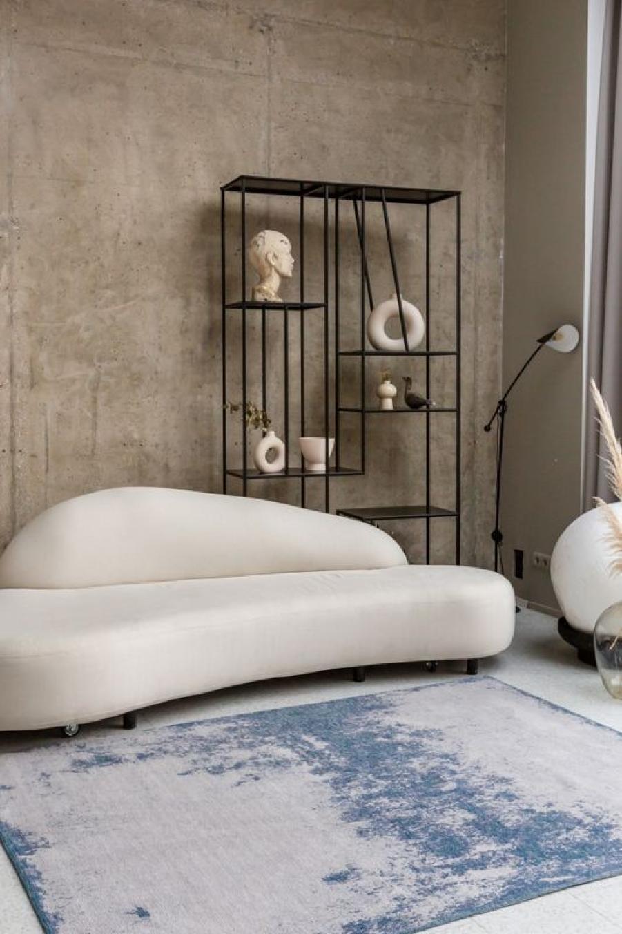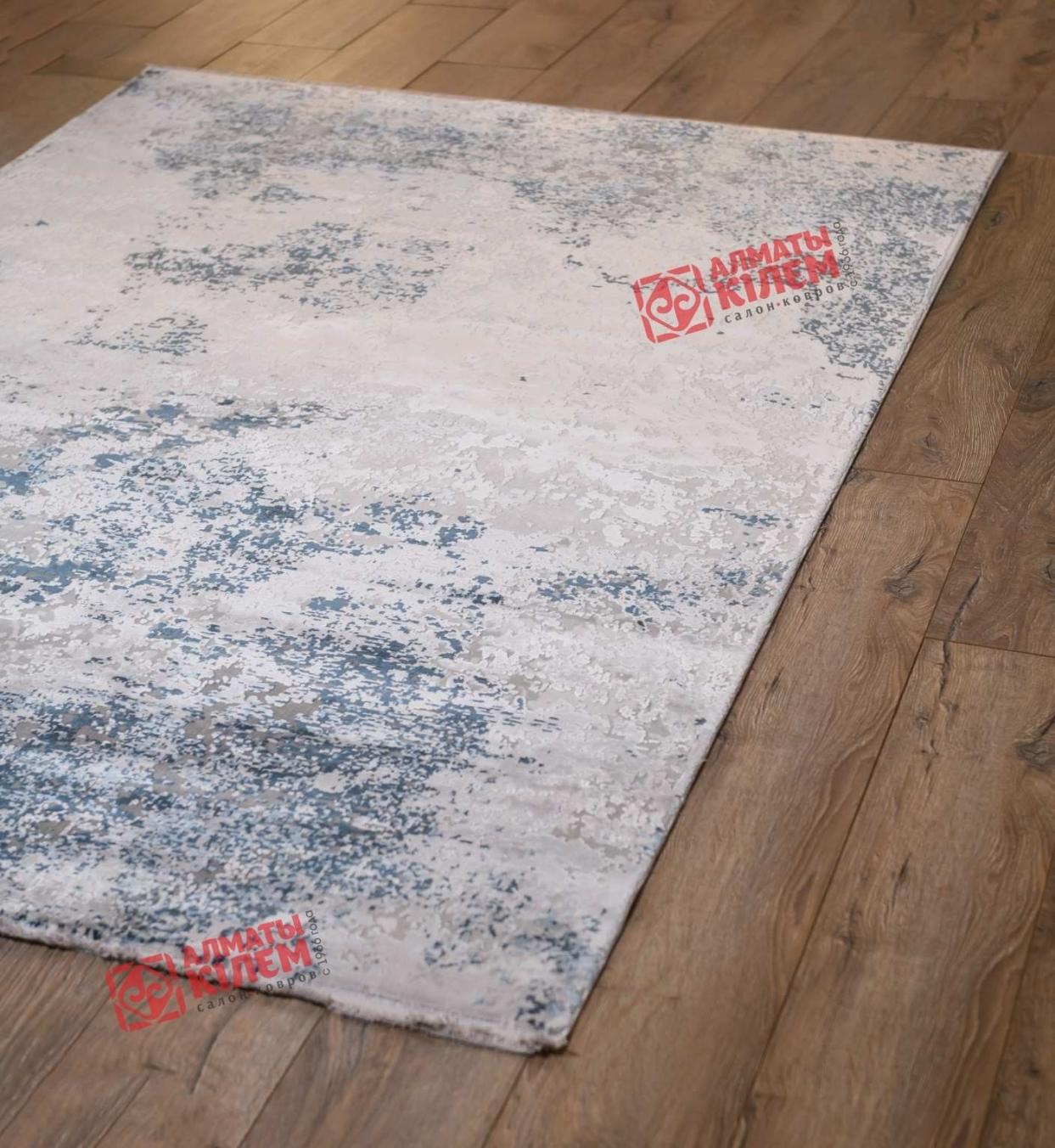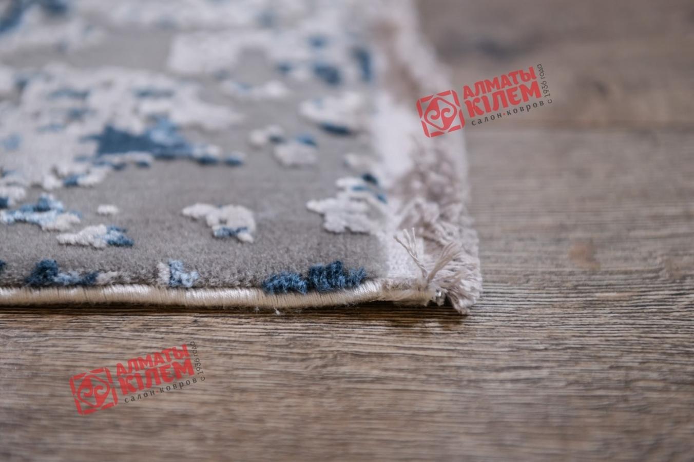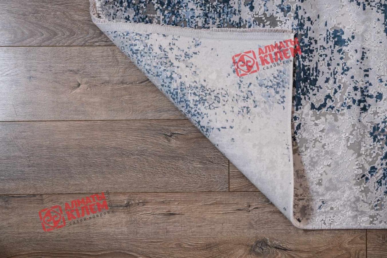 Напольный ковер из коллекции «Troia» от турецкого бренда «SetaHali» в современном дизайне. Это покрытие отличает оригинальное дизайнерское решение. Модель лишена традиционных классических элементов. Декор ковра создан переходом серого оттенка в синий. Граница между тонами и полутонами слегка размыта. Это делает фактуру полотна подобием гранитного или мраморного камня с прожилками.